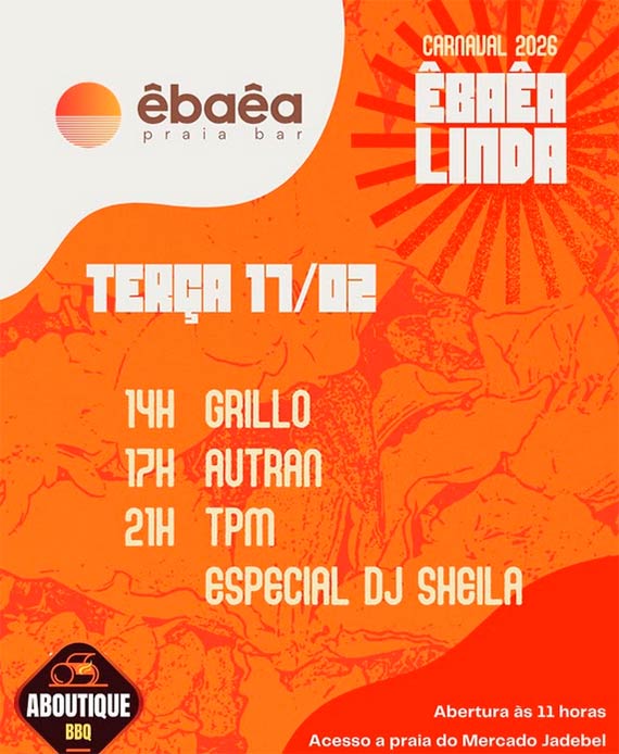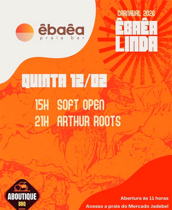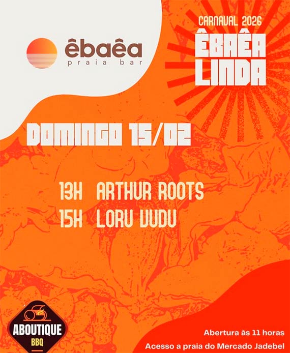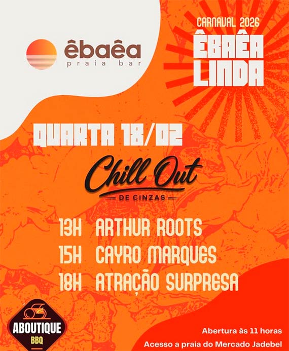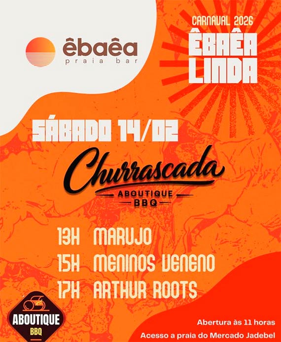 Prepare-se para dias intensos de música, encontros e muita vibração boa. Do groove ao eletrônico, do rock às brasilidades, o ÊBAÊA vai pulsar do dia à noite. Serão 7 dias de programação especial, DJs residentes, convidados, banda de rock, churrascada e aquele clima que só quem vive sabe. Música de dia. Energia de noite. Churrascada especial.