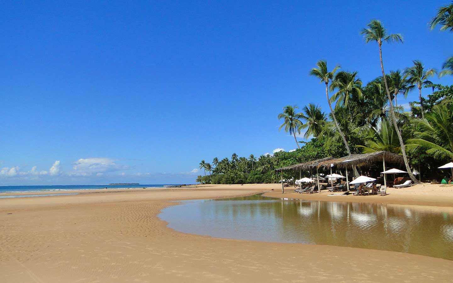 Les plages ne manquent pas sur la Péninsule. Il y en a pour tous les goûts. Celles qui font face à l'océan sont les plus étendues, avec de fortes vagues, du sable clair et des récifs qui forment des piscines naturelles. Du côté de la Baie de Camamu, les eaux sont plus calmes, sans vagues, avec souvent peu de fond.
