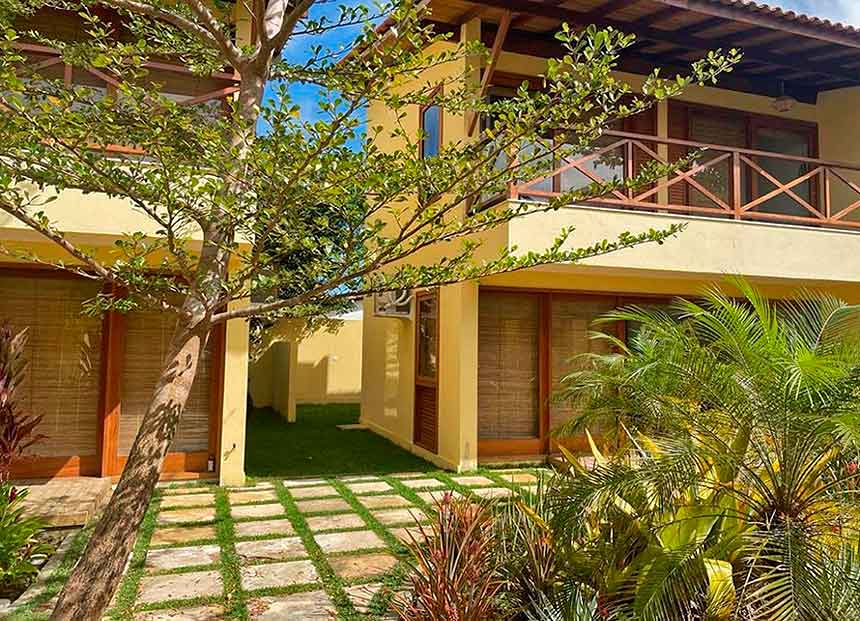 Condomínio com casas para temporada. 03 Casas com 2 suítes, sala, cozinha, toda mobiliada, lavabo, varanda, jardim. Ar-condicionado em todos os ambientes. Acomoda até 5 pessoas. 01 Casa com 3 quartos, sendo 1 suíte, sala grande, cozinha completa, banheiro, lavabo, varanda, jardim. Ar-condicionado em todos os ambientes. Acomoda 6 a 8 pessoas.