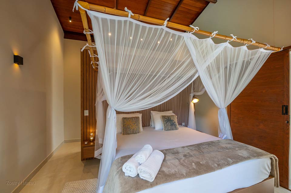 Casa de Alto Padrão em Harmonia com a Natureza. Viva a combinação perfeita entre o charme autêntico de Maraú e o conforto do luxo contemporâneo, em um espaço pensado para relaxar e aproveitar cada momento. Casa ampla e aconchegante para até 6 hóspedes, com 2 suítes e sofá-cama na sala, além de banheiro privativo. As 2 suítes contam com ar-condicionado, ventilador e camas box excelentes.